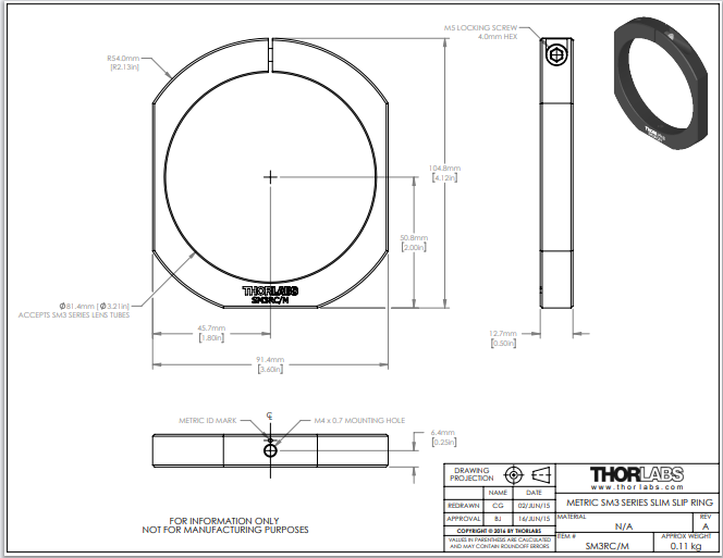 Thorlabs索雷博 SM3RC/M - 滑环,用于SM3透镜套筒