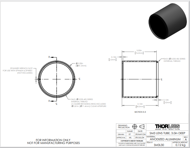 Thorlabs索雷博     SM3L30 - SM3透镜套筒