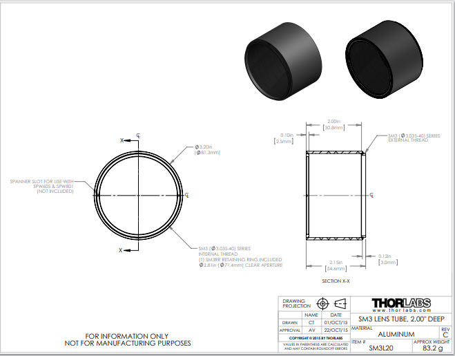 Thorlabs索雷博     SM3L20 - SM3透镜套筒