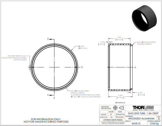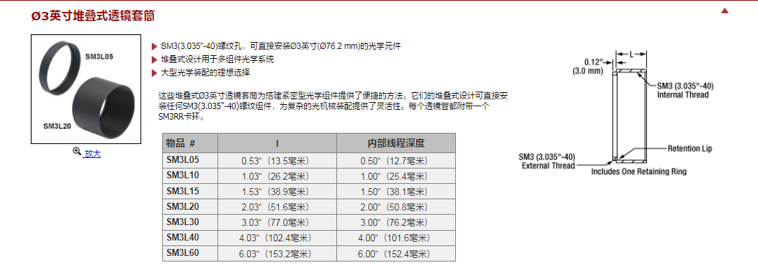 Thorlabs索雷博 SM3L15 - SM3透镜套筒