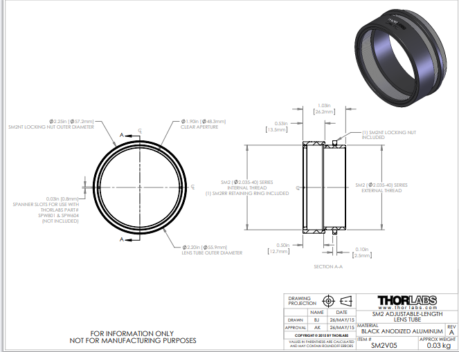 Thorlabs索雷博 SM2V05 - Ø2英寸可调透镜套筒