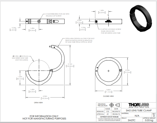 Thorlabs索雷博     SM2TC - 夹具,用于SM2透镜套筒
