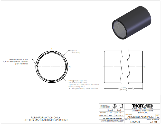 Thorlabs索雷博 SM2M35 - SM2透镜套管