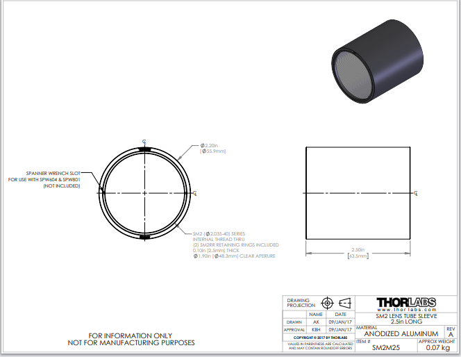 Thorlabs索雷博 SM2M25 - SM2透镜套管