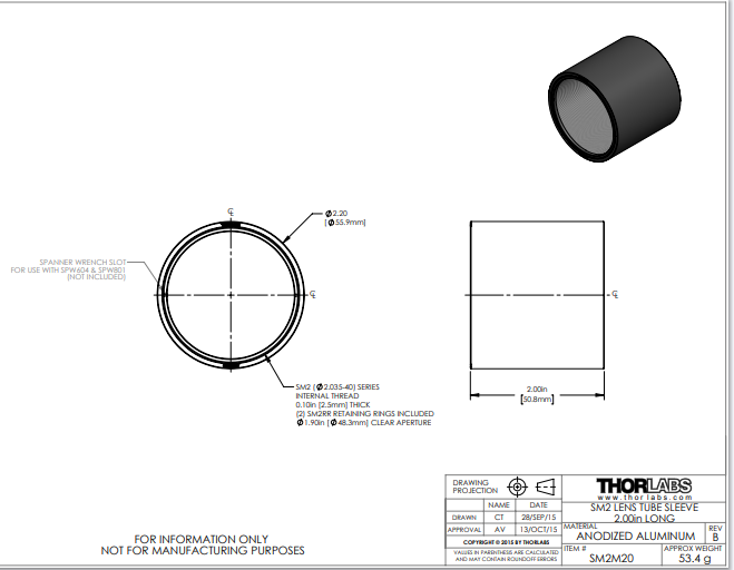 Thorlabs索雷博     SM2M20 - SM2透镜套管