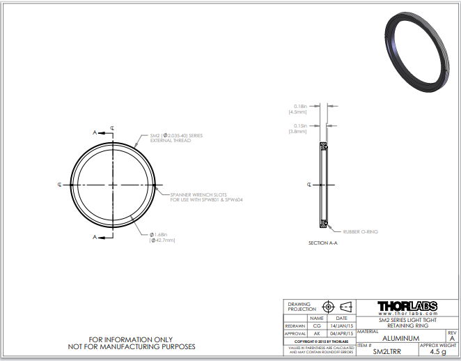 Thorlabs索雷博     SM2LTRR - 无应力卡环