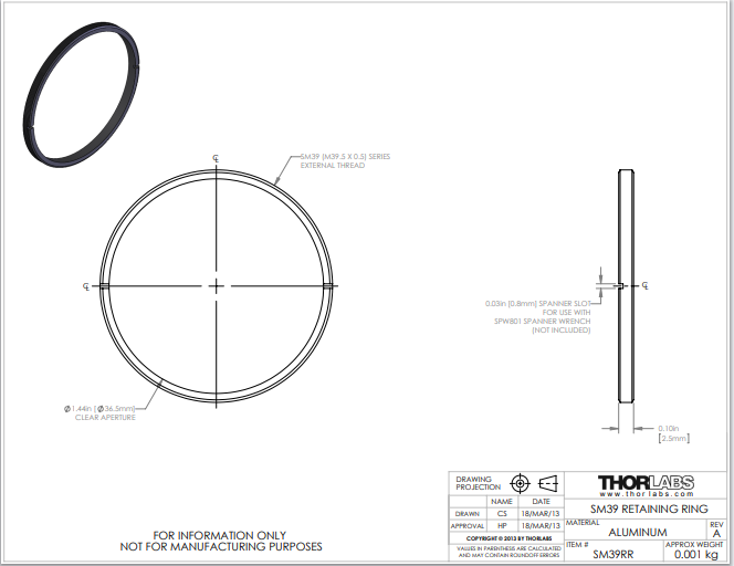 Thorlabs索雷博 SM39RR - M39.5 x 0.5卡环