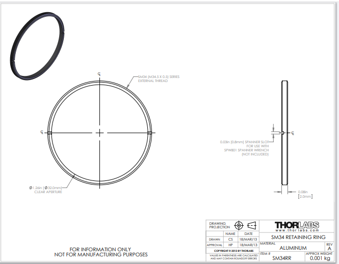 Thorlabs索雷博 SM34RR - M34.5 x 0.5卡环