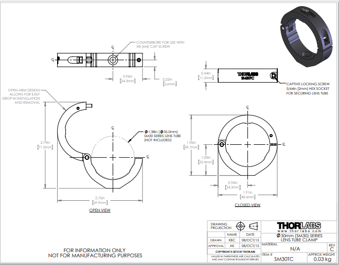Thorlabs索雷博     SM30TC - 夹具,用于SM30透镜套筒