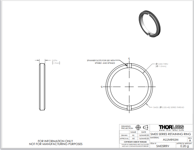 Thorlabs索雷博 SM05RRV - SM05卡环