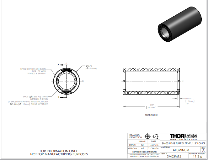 Thorlabs索雷博 SM05M15 - SM05透镜套管