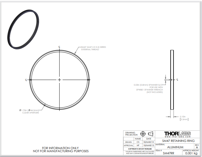 Thorlabs索雷博 SM47RR - M47.5 x 0.5卡环