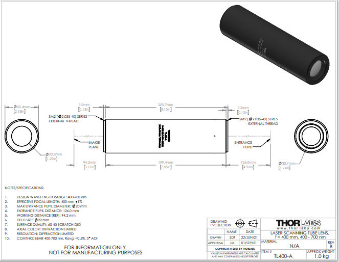 Thorlabs索雷博 TL400-A - 套筒透镜