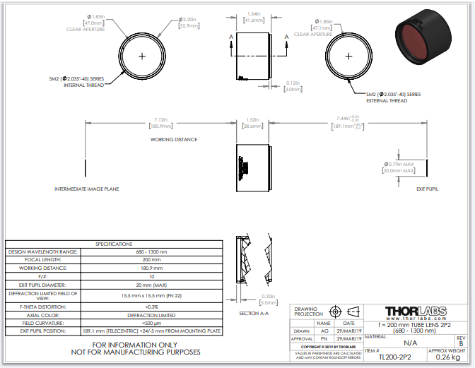 Thorlabs索雷博     TL200-2P2 - 套筒透镜