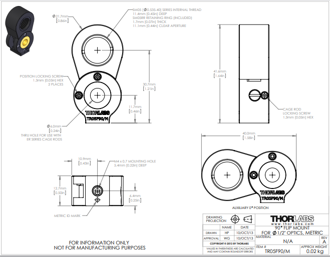Thorlabs索雷博 TR05F90/M - 90°翻转安装座