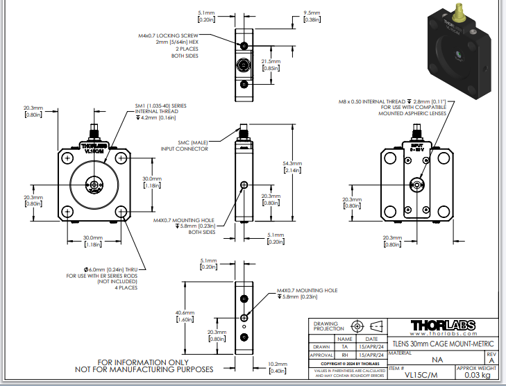 Thorlabs索雷博 VL15C/M 可调焦透镜