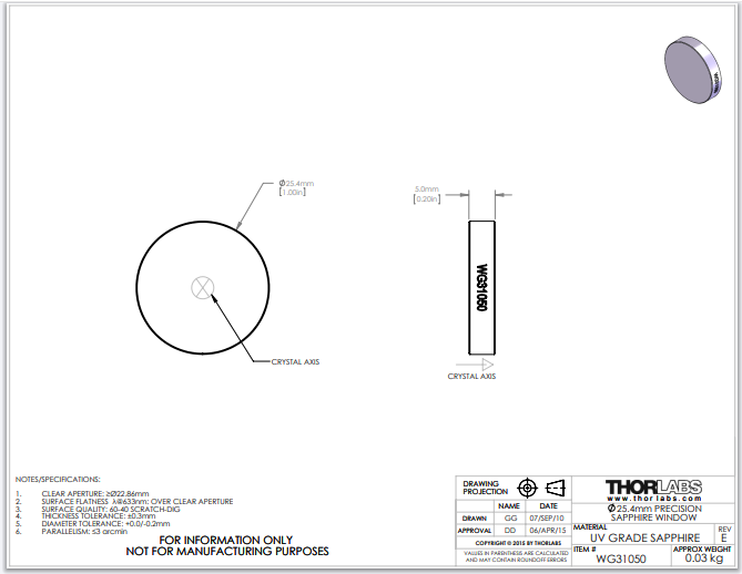 Thorlabs索雷博 WG31050 - Ø1英寸蓝宝石精密窗口片