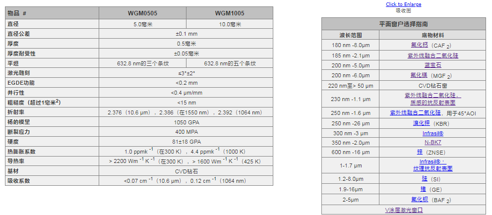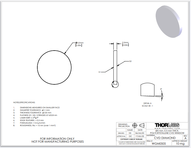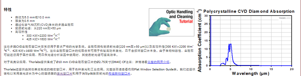 Thorlabs索雷博 WGM0505 - 多晶CVD金刚石窗口片