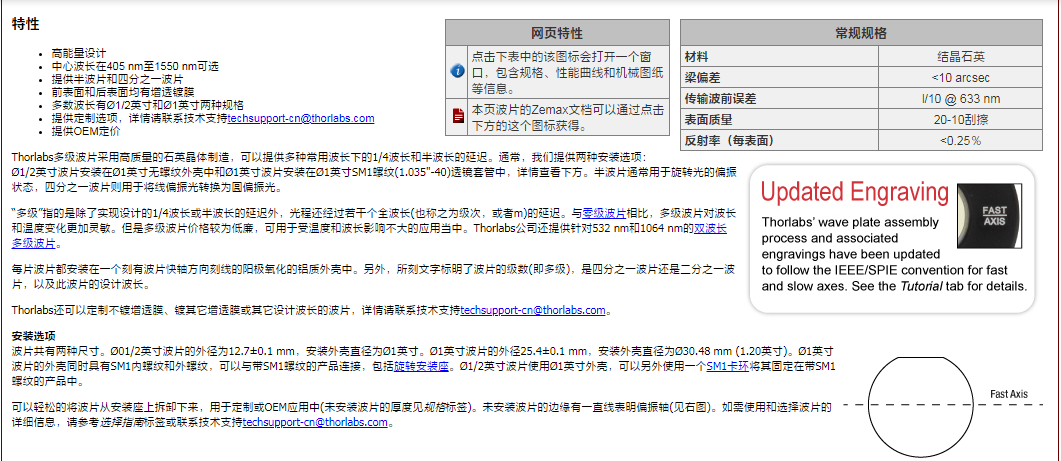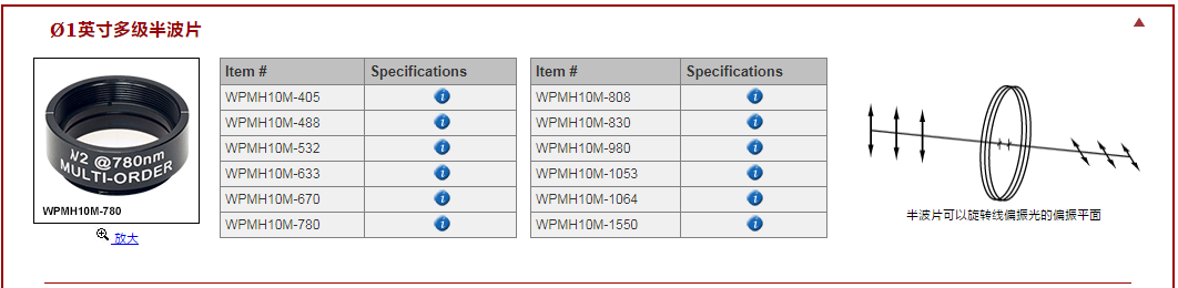 Thorlabs索雷博     WPMH10M-633 - Ø1英寸多级半波片