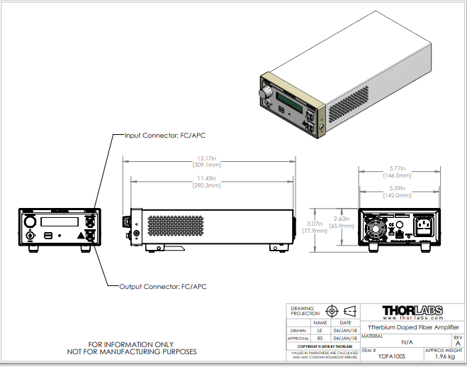 Thorlabs索雷博 YDFA100S - 掺镱光纤放大器
