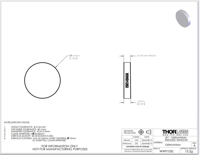 Thorlabs索雷博     WW91050 - 锗楔形窗口片