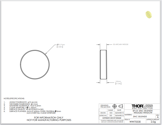 Thorlabs索雷博 WW70530 - 楔形硒化锌窗口片