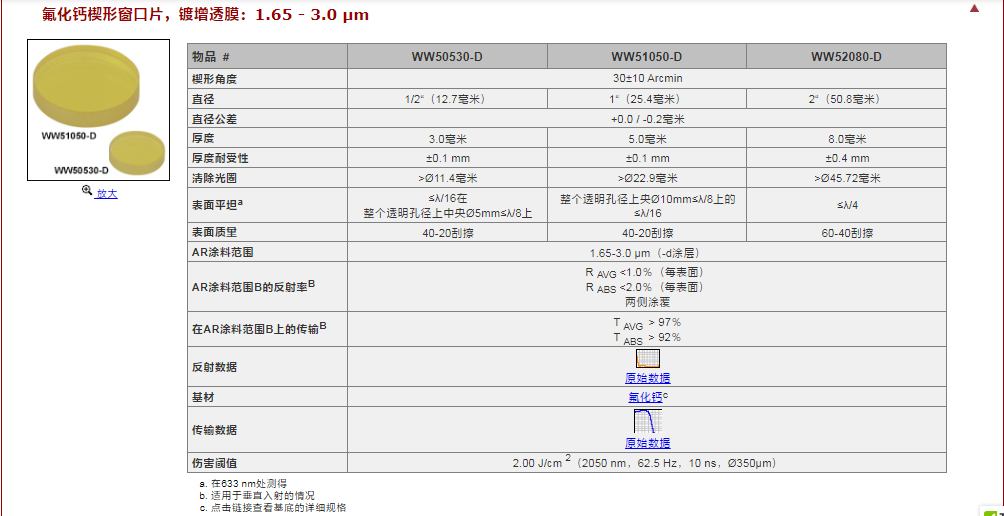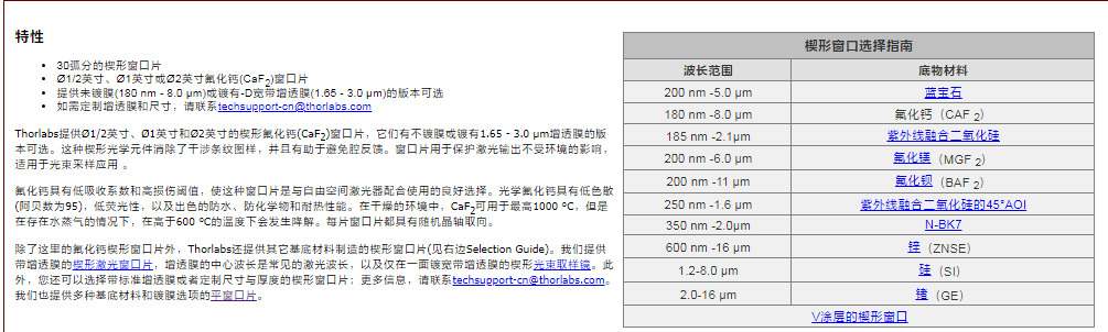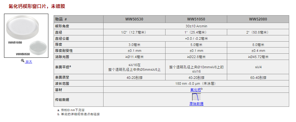 Thorlabs索雷博 WW52080 - 氟化钙楔形窗口片