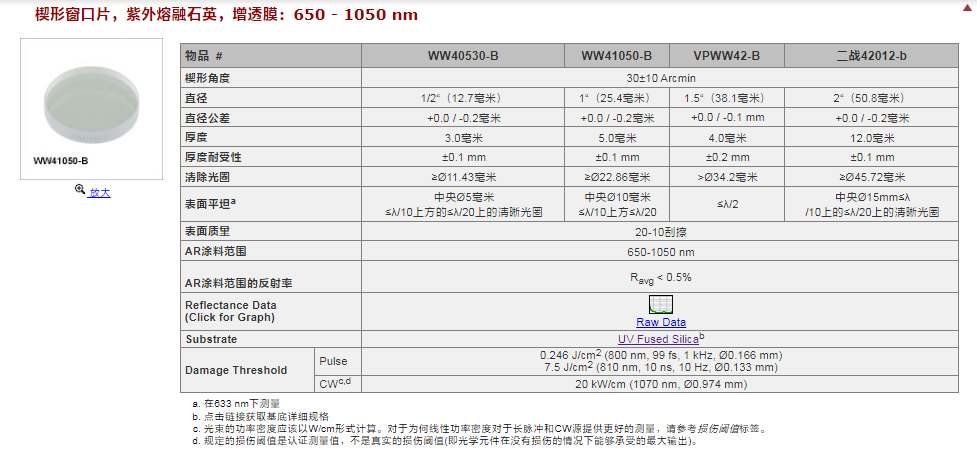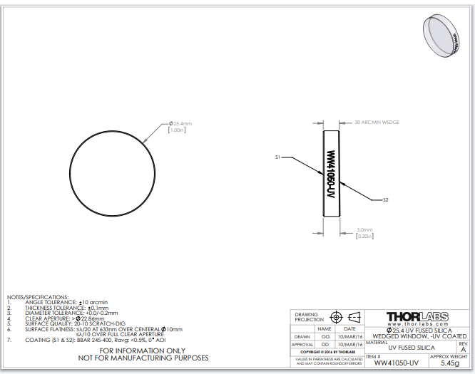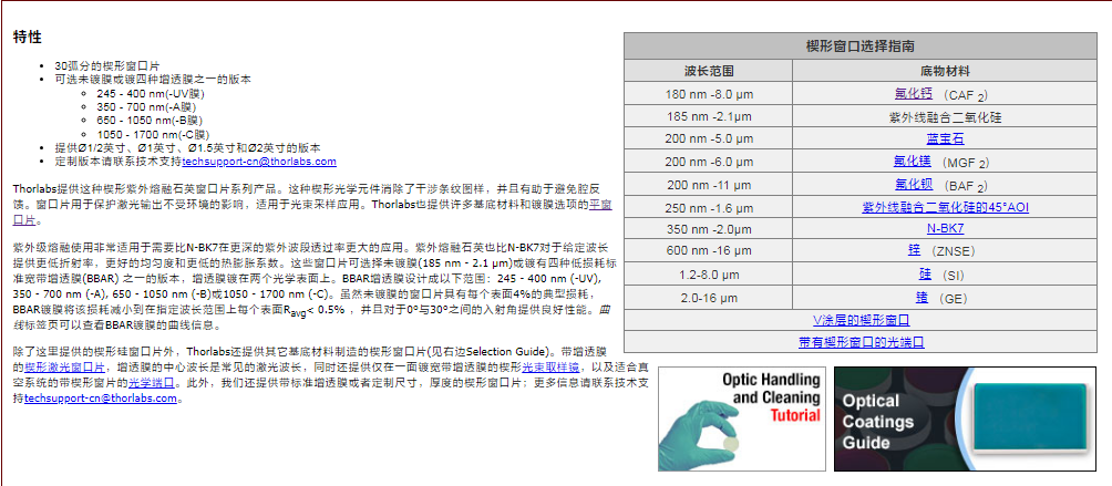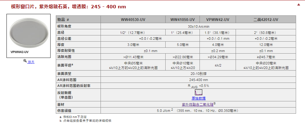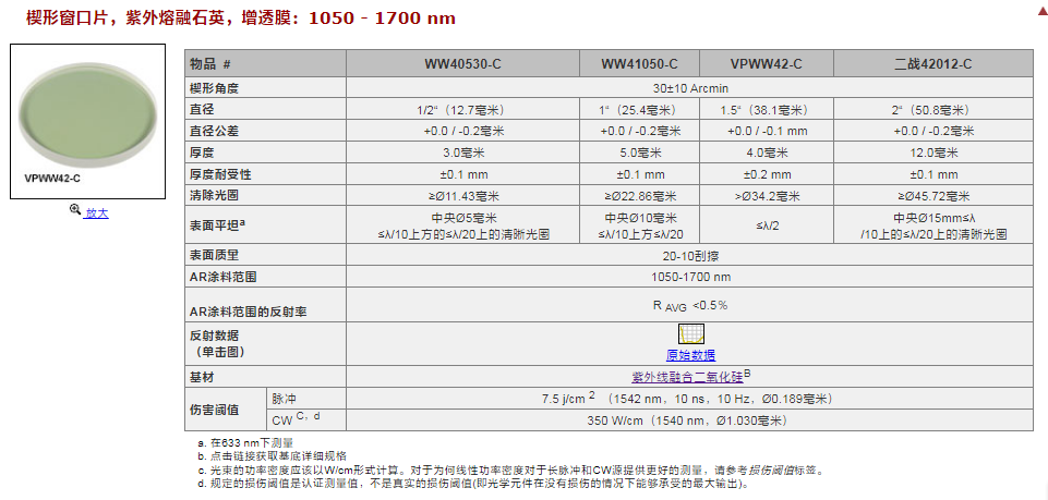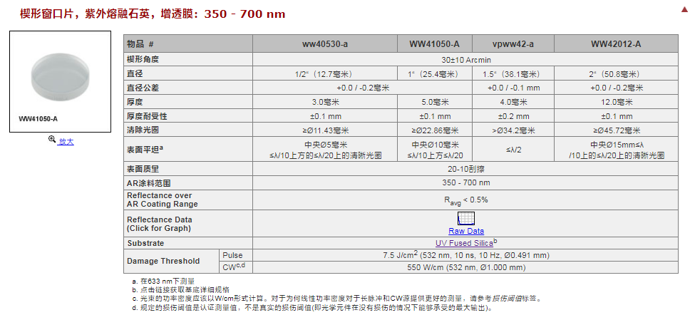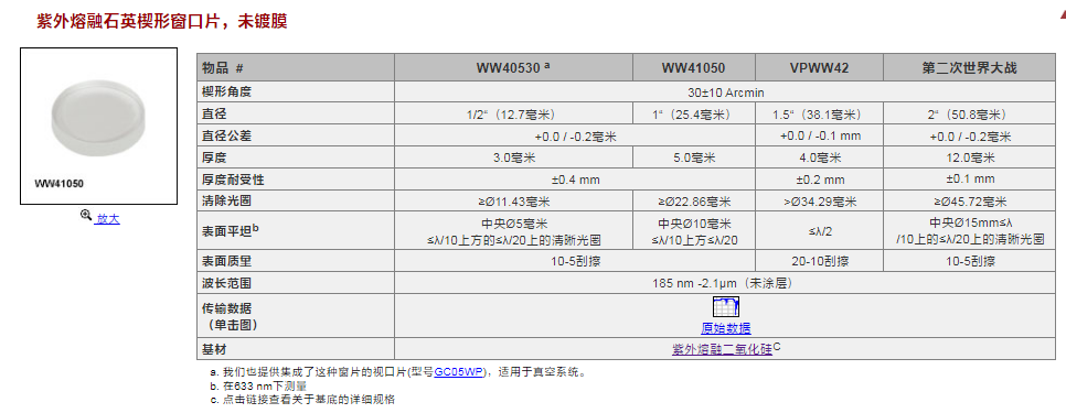 Thorlabs索雷博 WW41050-UV - 楔形窗口片