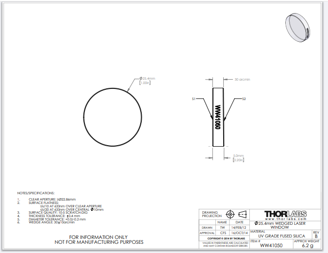 Thorlabs索雷博     WW41050 - 楔形窗口片
