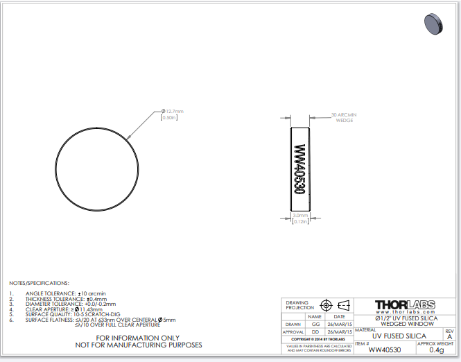 Thorlabs索雷博     WW40530 - 楔形窗口片