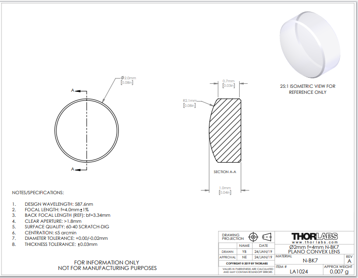Thorlabs索雷博 LA1024 平凸透镜