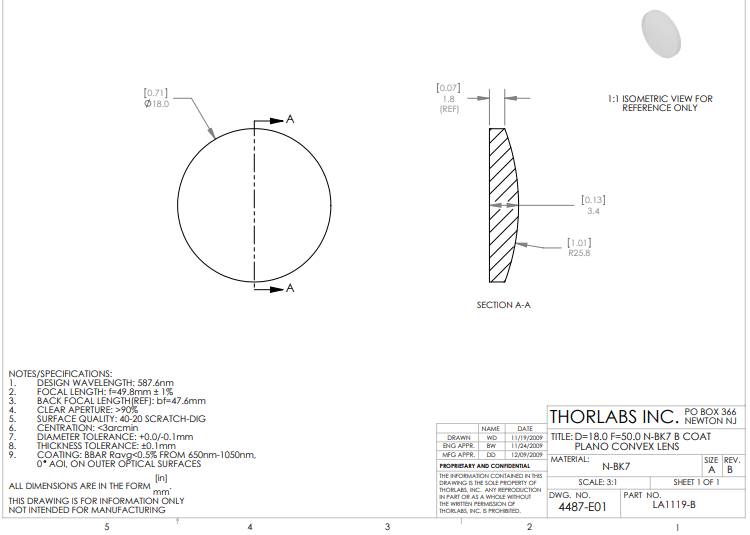 Thorlabs索雷博    LA1119-B   平凸透镜