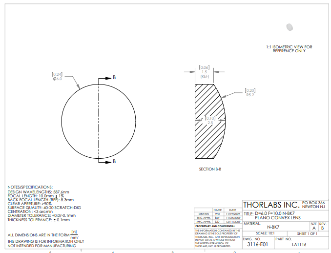 Thorlabs索雷博 LA1116 平凸透镜