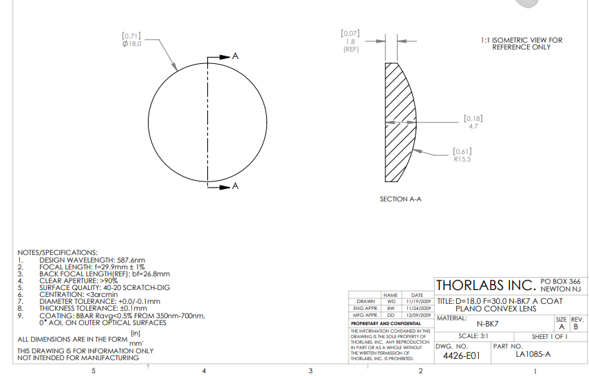 Thorlabs索雷博 LA1085-A 平凸透镜