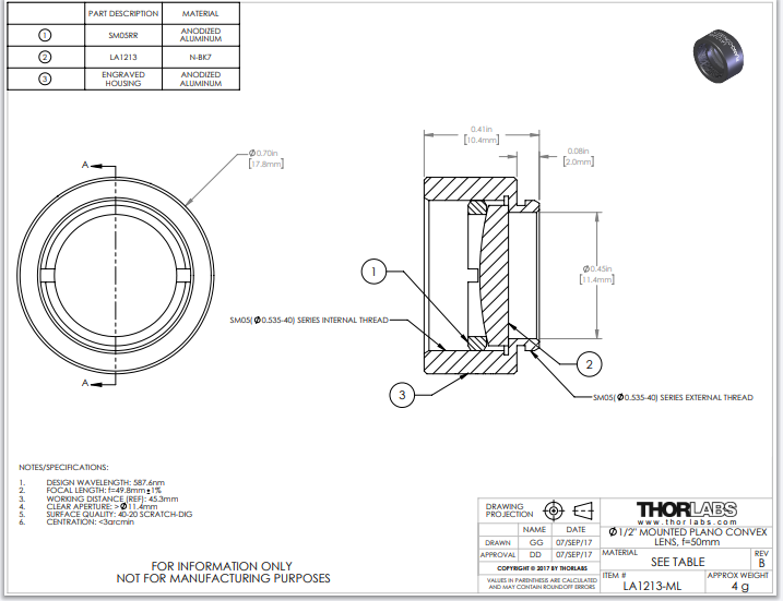 Thorlabs索雷博 LA1213-ML 平凸透镜