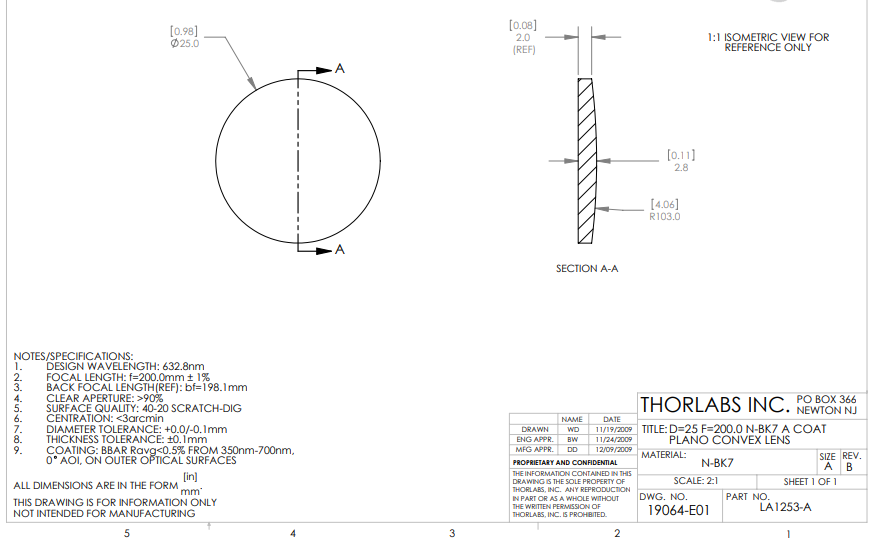 Thorlabs索雷博    LA1253-A   平凸透镜