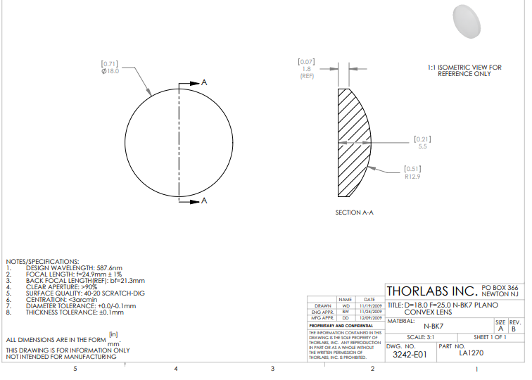 Thorlabs索雷博 LA1270 平凸透镜
