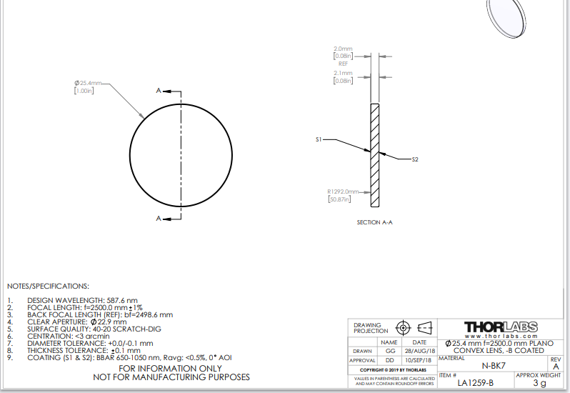 Thorlabs索雷博    LA1259-B   平凸透镜