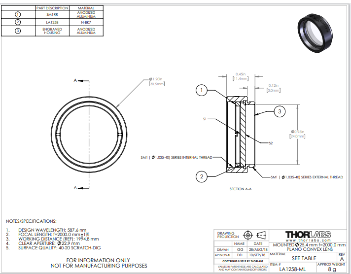 Thorlabs索雷博 LA1258-ML 平凸透镜