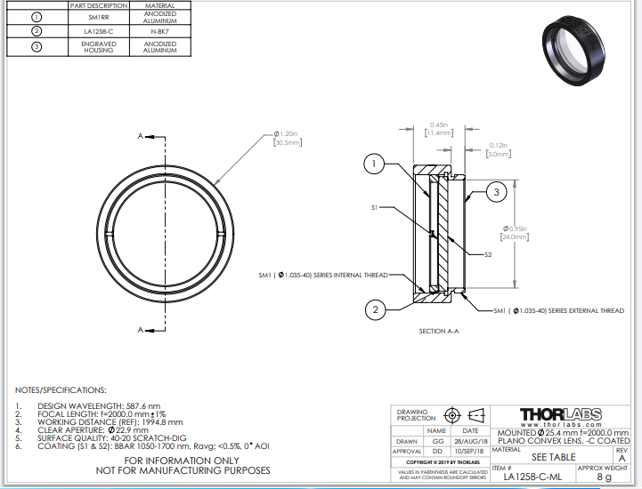 Thorlabs索雷博    LA1258-C-ML   平凸透镜