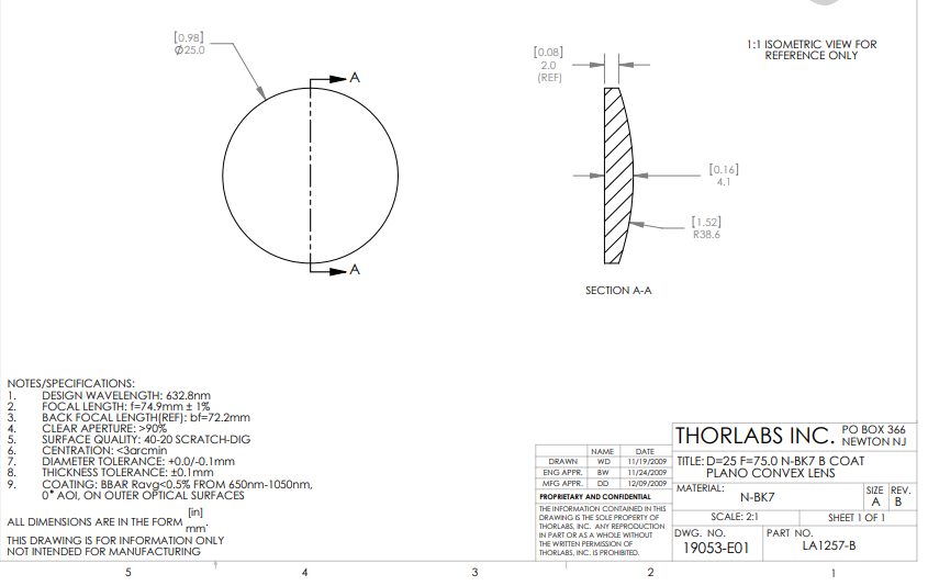 Thorlabs索雷博    LA1257-B   平凸透镜