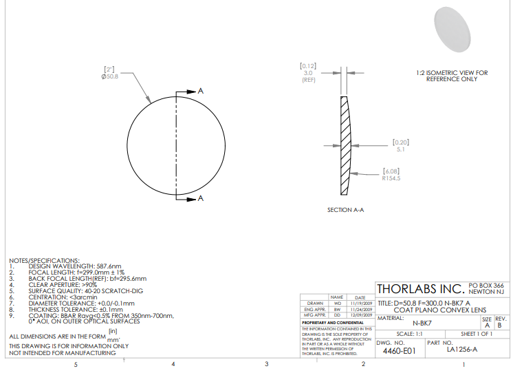 Thorlabs索雷博    LA1256-A   平凸透镜