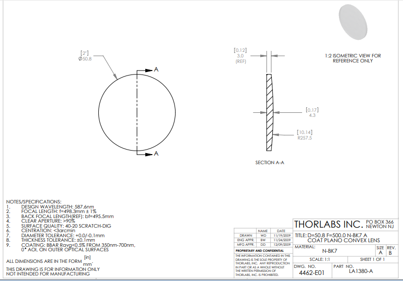Thorlabs索雷博    LA1380-A   平凸透镜