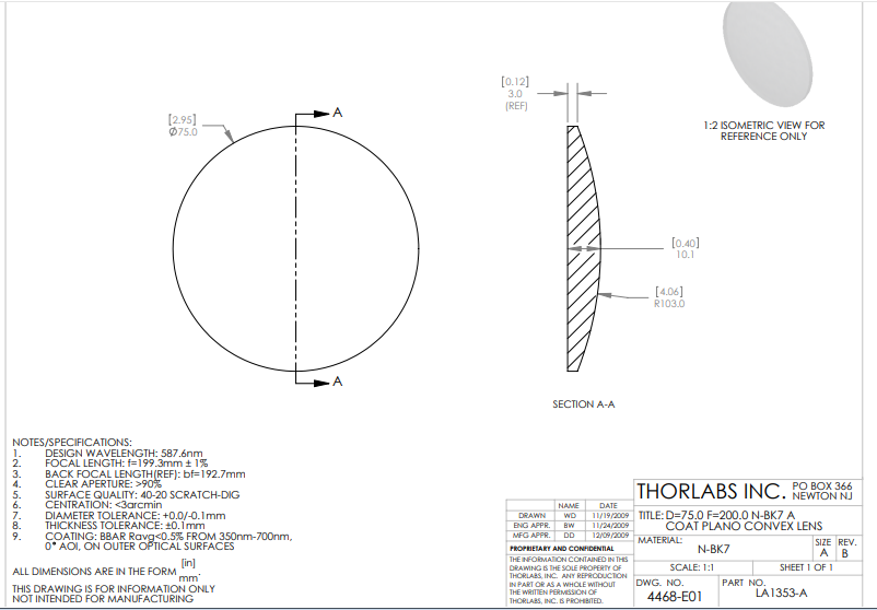 Thorlabs索雷博 LA1353-A 平凸透镜