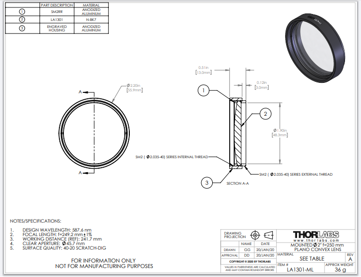 Thorlabs索雷博 LA1301-ML 平凸透镜