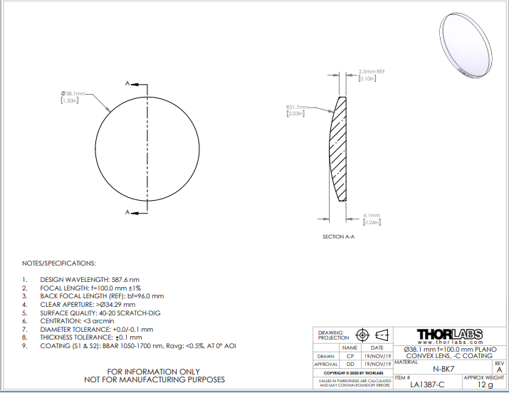 Thorlabs索雷博 LA1387-C 平凸透镜