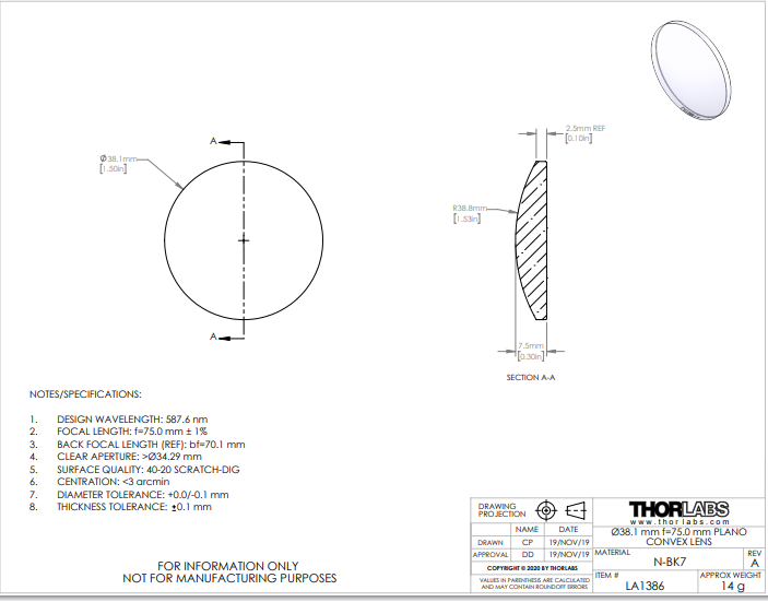 Thorlabs索雷博 LA1386 平凸透镜