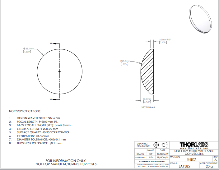Thorlabs索雷博 LA1385 平凸透镜