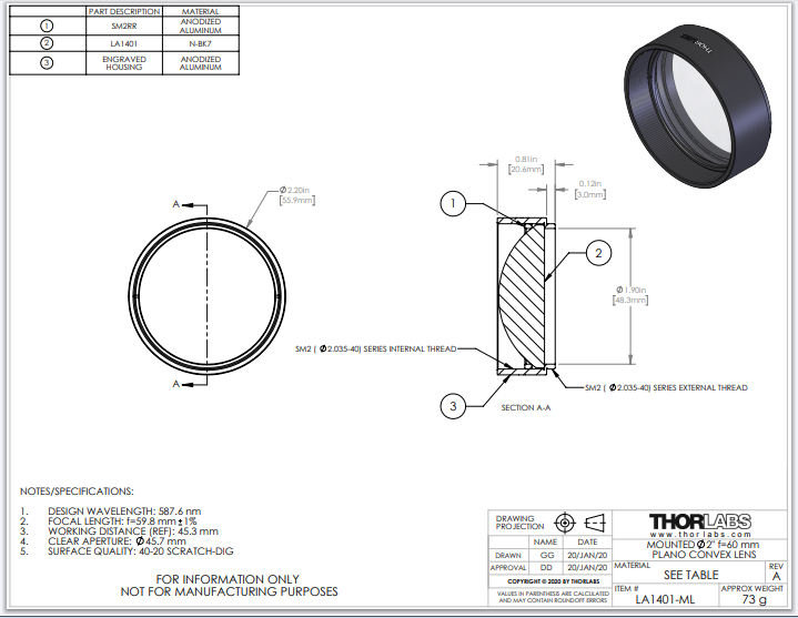 Thorlabs索雷博 LA1401-ML 平凸透镜