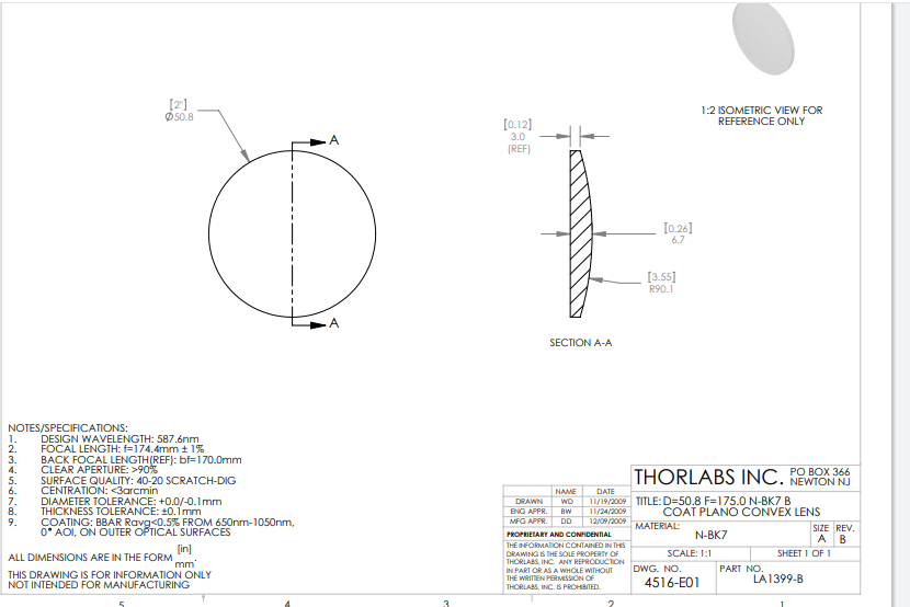 Thorlabs索雷博    LA1399-B   平凸透镜